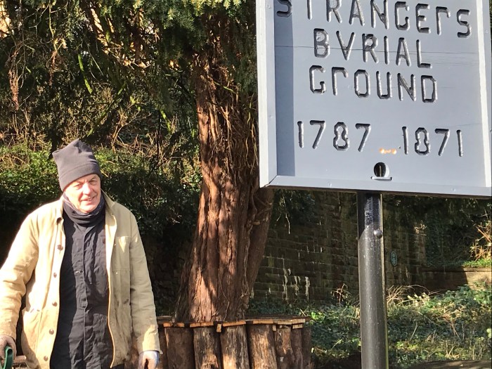 Walking in the Clifton area of Bristol recently, I came across a small piece of ground almost hidden behind a hedge. It was being tended by the man pictured below, who did not tell me his name but explained that he had decided to restore and maintain a burial-ground that had been used for nearly a century until 1871. The Historic England record confirms that it was an ‘overflow graveyard for St Paul’s, Clifton (demolished), much used by visitors to the Hotwells. Closed 1871’.